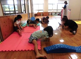 発達の遅れや心身に障害を持つ幼児を対象に、親子通園により、日常生活の基本的な行動を身に付け、将来豊かな社会生活を営むことができるように、個々の障害や発達の程度に応じた療育を行う。