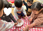 冬ならではの遊びに親しみました!餅つきごっこでは「ぺったんこ、ぺったんこ!」と大きなかけごえをだしながら餅つきを楽しみました。