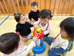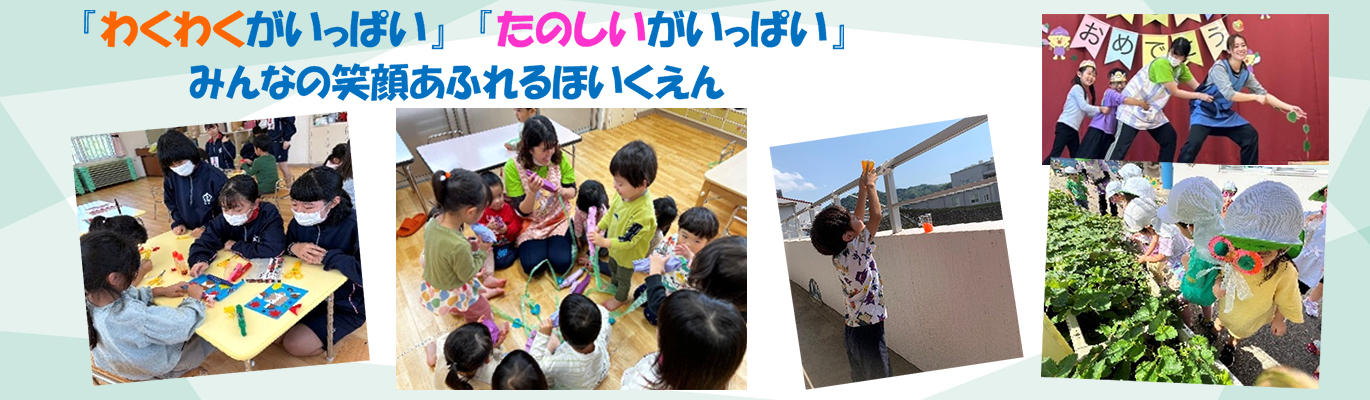 「保育園大好き♡」毎日がわくわくするようなみんなの笑顔あふれる保育園となりますよう、家庭的な雰囲気の中、一人ひとりの「やってみたい!」からはじまる学びの芽を大切に、職員一同、力を合わせて日々の保育に取り組んでまいります。