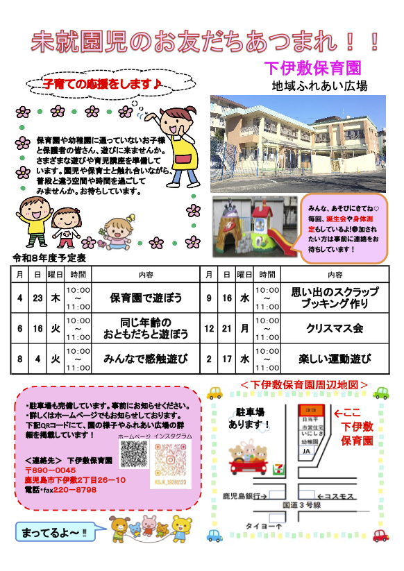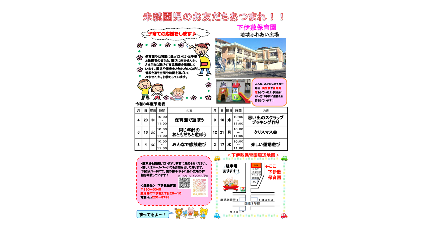 下伊敷保育園の令和8年度「ふれあい広場」が新たに始まります。