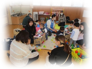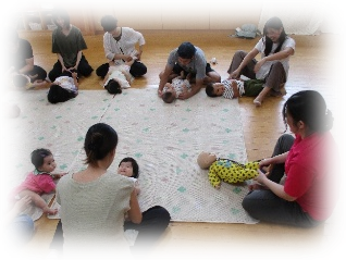 ふれあい遊びからはじめ、主なる遊びへと展開していきます。赤ちゃんも妊婦さんも気軽にご参加下さい。お待ちしています。